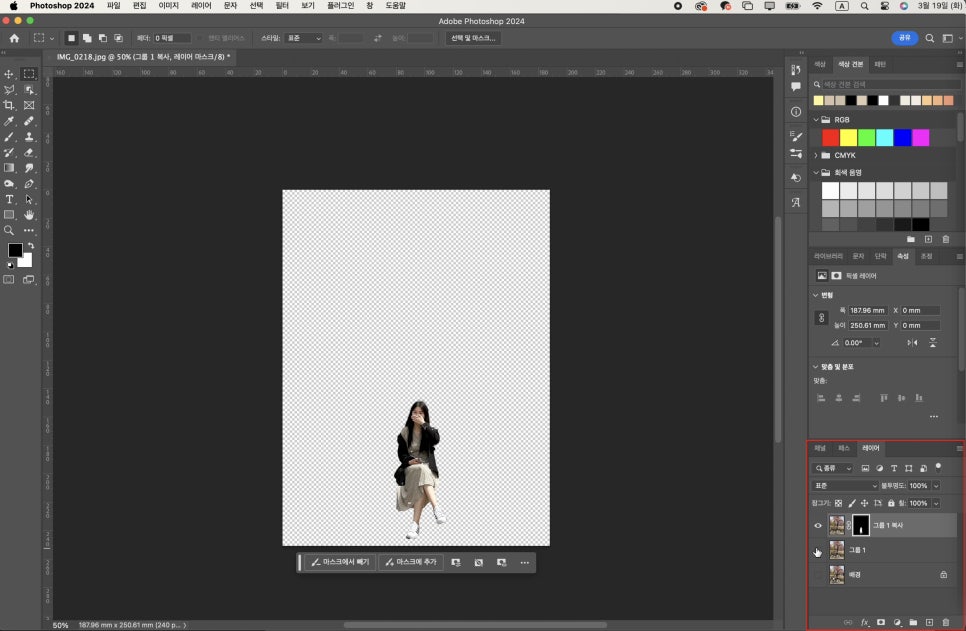 그러면 똑같은 레이어가 2개가 되었겠죠? 복제된 레이어만 선택하고 '배경 제거'를 클릭합니다.
