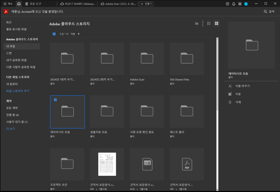 완성된 자료는 내 컴퓨터나 외장하드 같은데다가 저장을 해도 됩니다. 그런데 애크로뱃을 구독하면 Adobe 클라우드 스토리지를 쓸 수 있어서, 여기에 업로드를 해놓으면 때와 장소에 관계 없이 인터넷이 되는 곳이라면 언제 어디서든 자료에 접근이 가능한 편의성도 챙길 수 있어요.