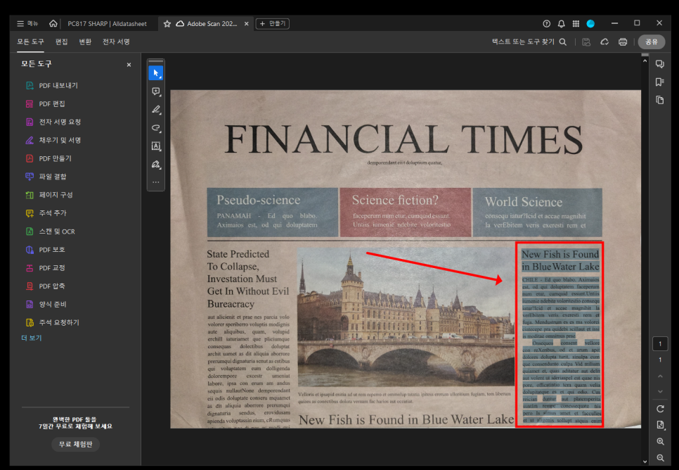 그럼 직접 PDF 텍스트 추출을 해보기 위해 어도비 애크로뱃을 설치합니다.