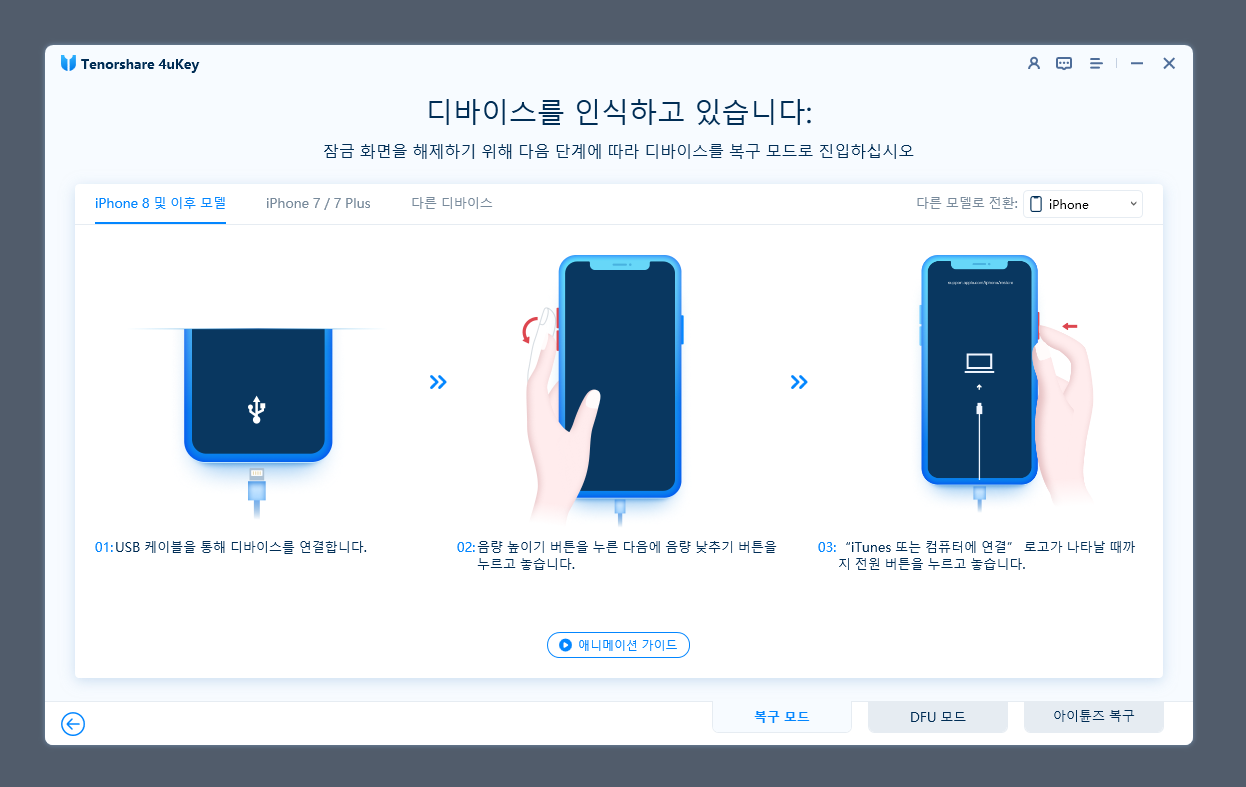 이 외에도 스크린 타임 암호 해제, MDM 우회, MDM 프로파일 제거 등 아이폰을 사용하면서 발생할 수 있는 대부분의 소프트웨어적인 문제를 해결할 수 있는 소프트웨어입니다.